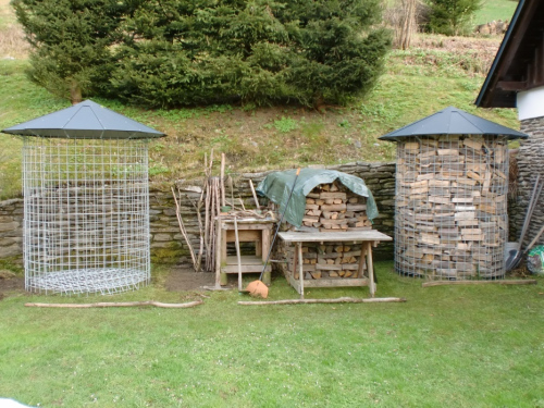 V principu se jedná o venkovní velkoobjemový kovový koš s vlastním zastřešením a bočním plněním pro uskladnění a rychlé prosychání palivového dřeva.